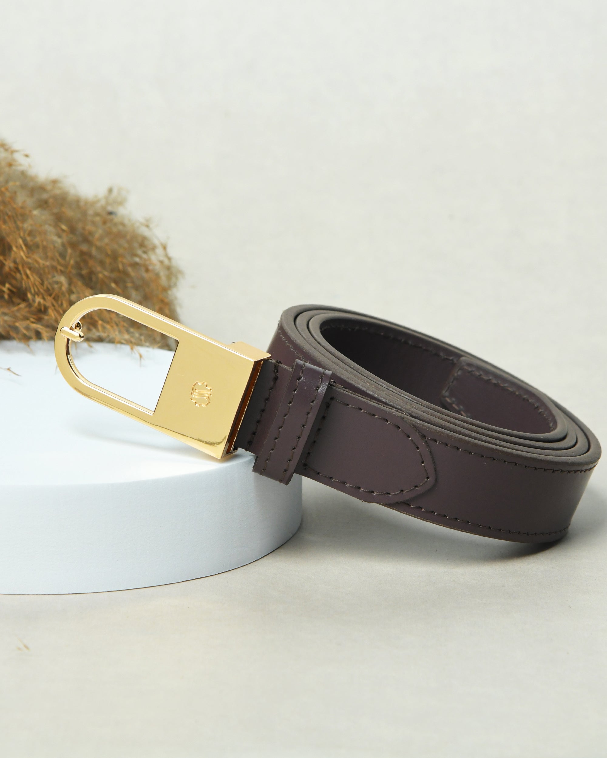 A premium genuine leather belt in rich French Roast brown, finished with a refined golden buckle. Perfect for smart casual and everyday styling with a polished touch.