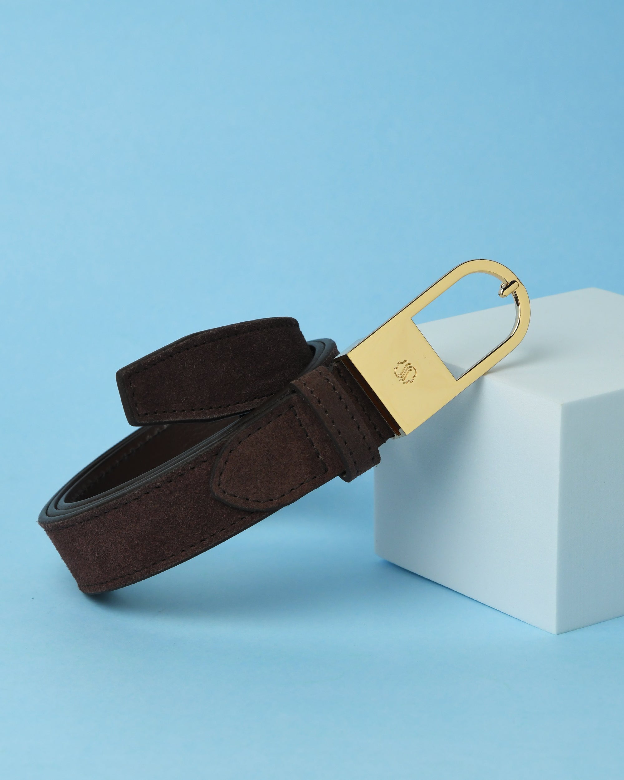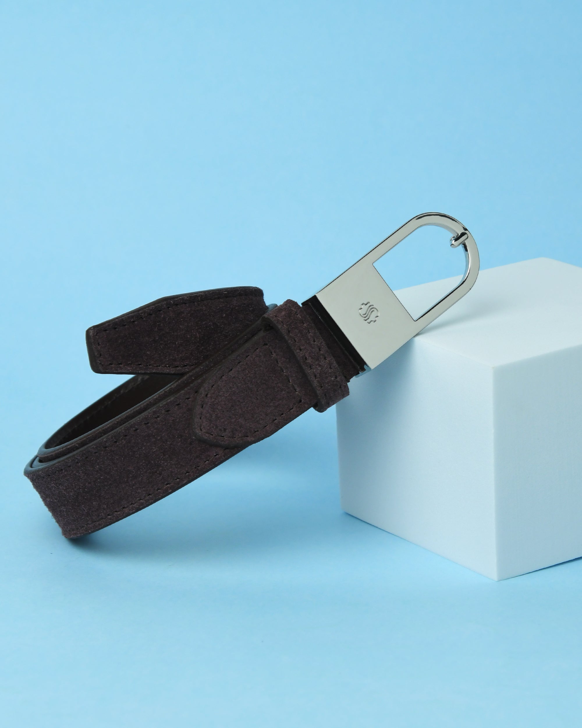 Premium suede belt in a deep French Roast shade, designed with a sturdy nickel buckle. Smooth texture and versatile colour, ideal for daily casual and smart-casual outfits.